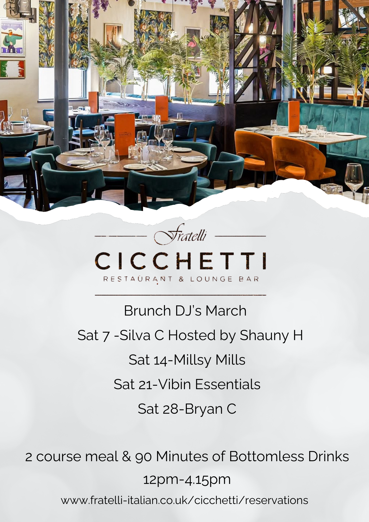 Bottomless every Saturday from 12pm-4.30pm.